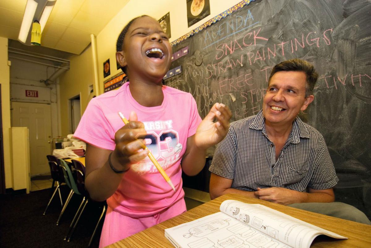 Janine gets help with her homework from her tutor, Steve. He’s good at explaining things in a way that’s easy to understand. He’s a bit of a joker too.