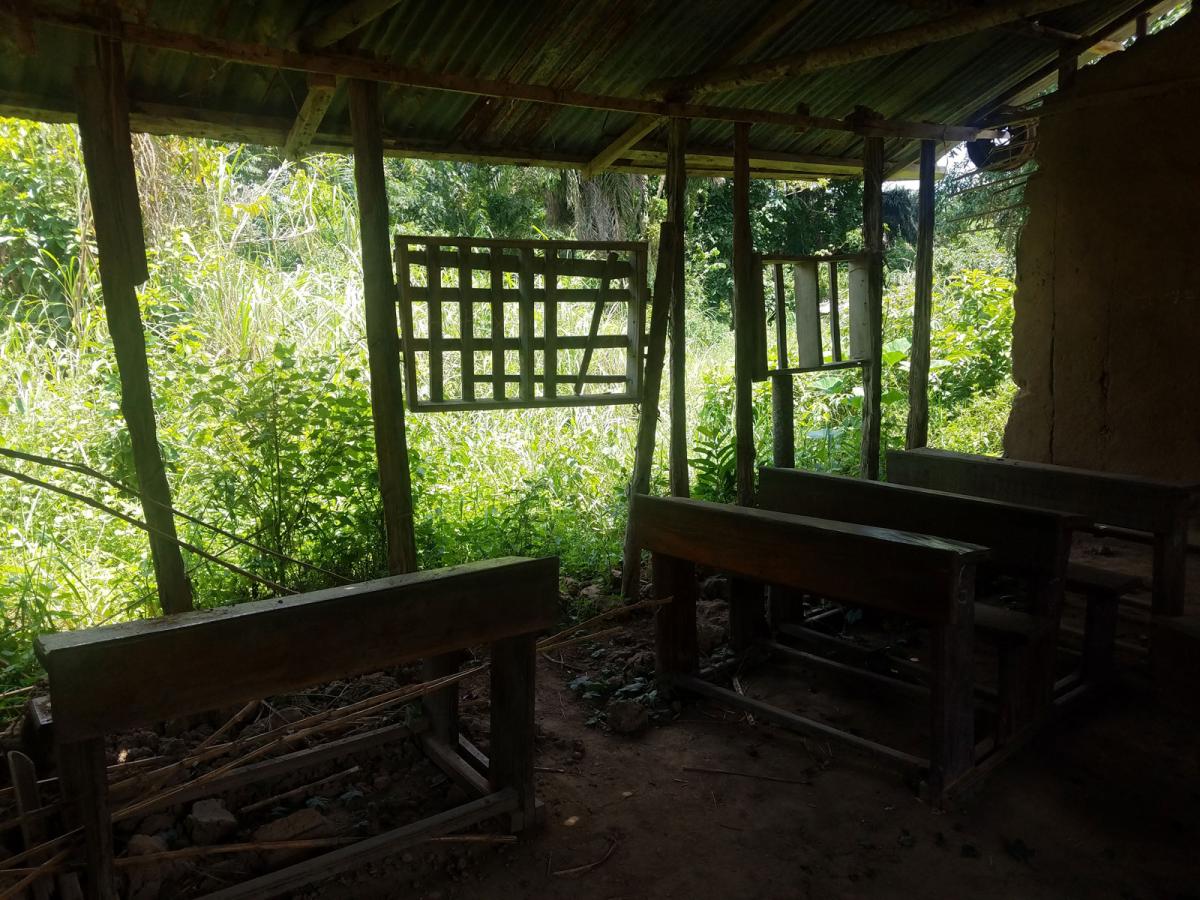 A school in a DR Congo village almost completely destroyed by a violent attack by an armed group.