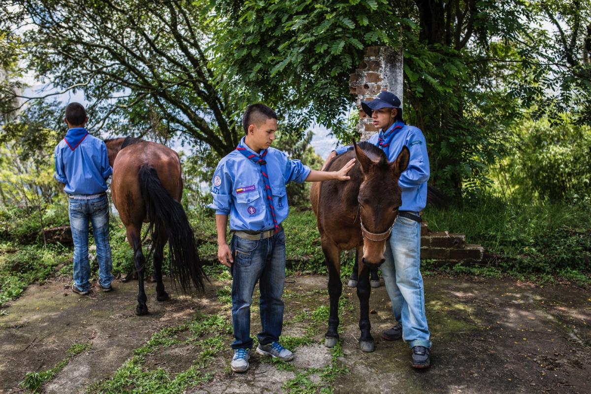 Children heal from traumatic experiences while being used as soldiers or by gangs through taking care cf horses at a children's center in Colombia.