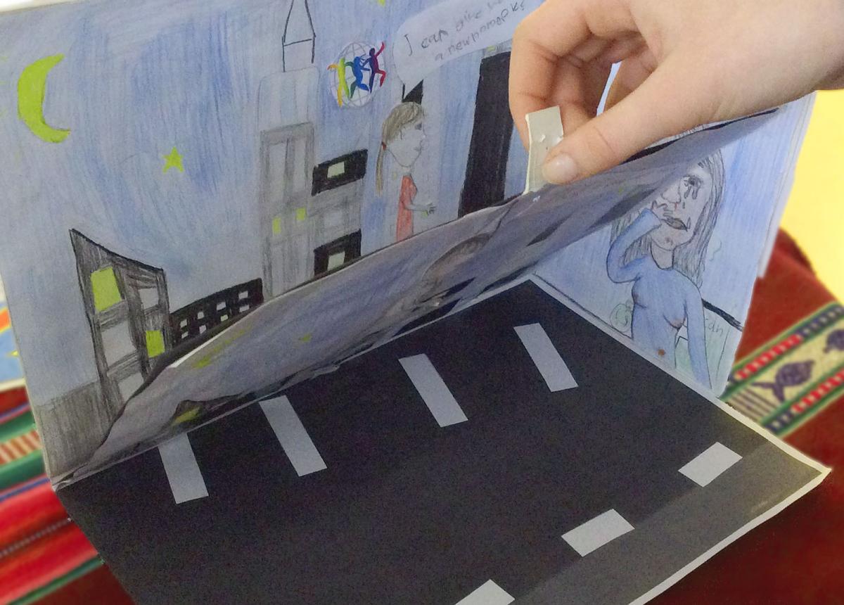 - Build two rooms that are opposite sides of reality, such as a difficult situation where a child is exploited, and the situation where the child has been freed and is building a better life. Here, on one side is a park area for vulnerable children, and on the other side the dark streets where some of them have lived and worked.
