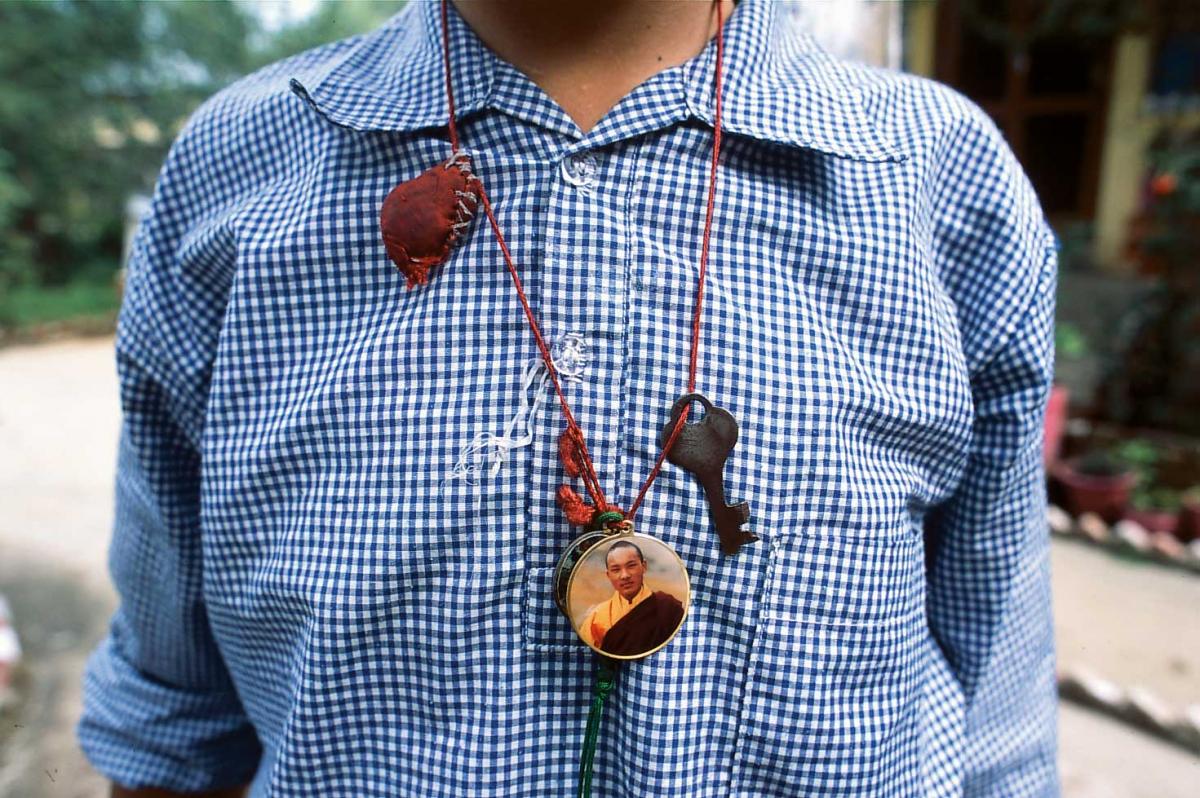 Around her neck Tashi has a picture of the Dalai Lama and another high lama, Karmappa. She also has the holy pills she got from the Dalai Lama when she came to India. Tashi remembers that he told her to study hard and look after her health. And that the Tibetans will soon get their land back. © Kim Naylor/WCPF