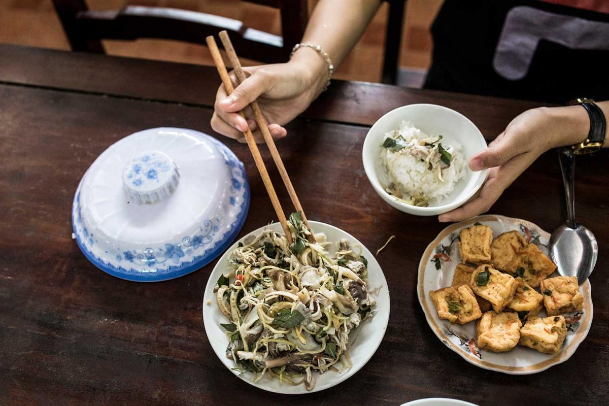 At Duc Son pagoda, many of the children eat using a spoon, but Mai, the nuns and most other people in Vietnam use chopsticks.